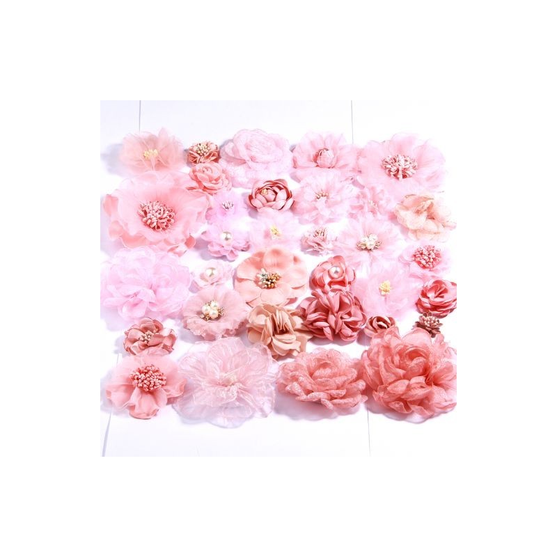 5Pcs Pink Series Rose Fabric Head Flowers For Baby Girls Headbands Decoration Burn Chiffon Flower For Hair Clips Accessories