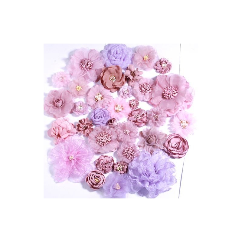 5Pcs Purple Pink Series Satin Chiffon Fabric Flowers For Baby Girls Headbands Head Flower For Hair Accessories Craft Projects