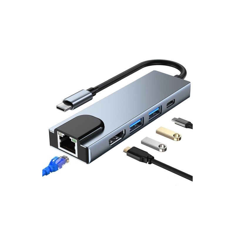 USB C Hub Type-C 3.1 to HDMI-Compatible RJ45 USB PD Fast Charge 5-in-1 USB Dock For MacBook Air Pro PC HUB