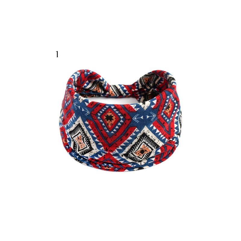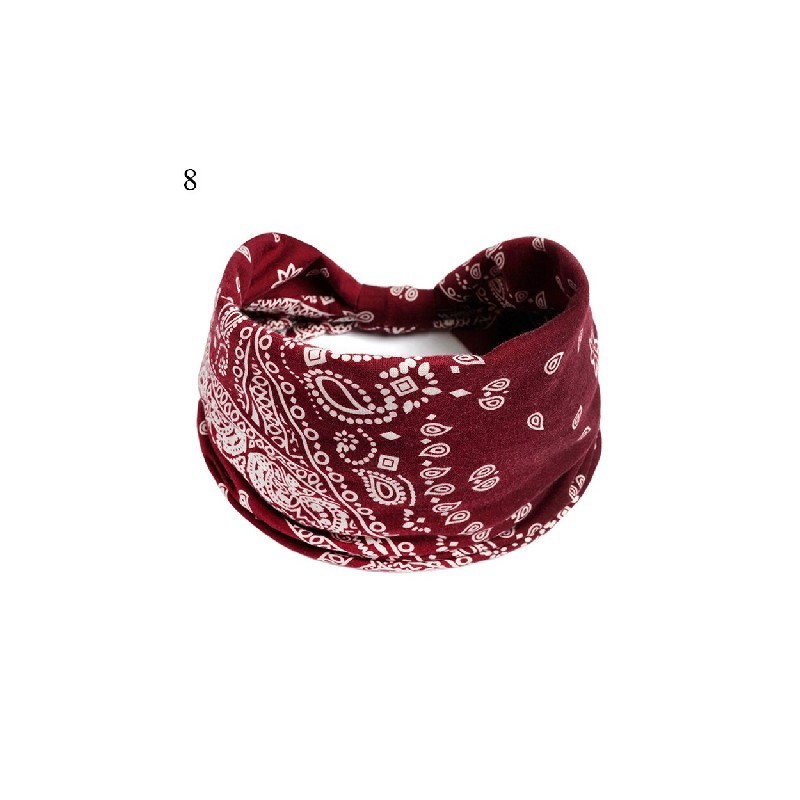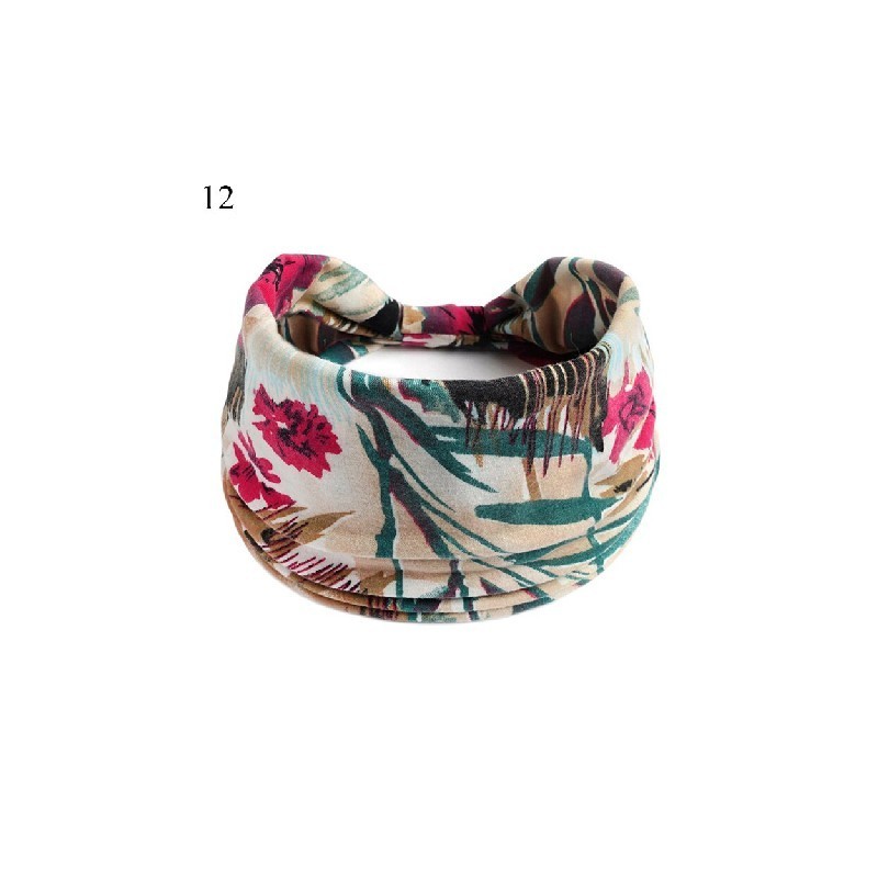 Vintage Boho Flower Print Wide Headbands Knotted Elastic Hairband Yoga Headwrap for Women Girls Cotton Bandana Hair Accessories