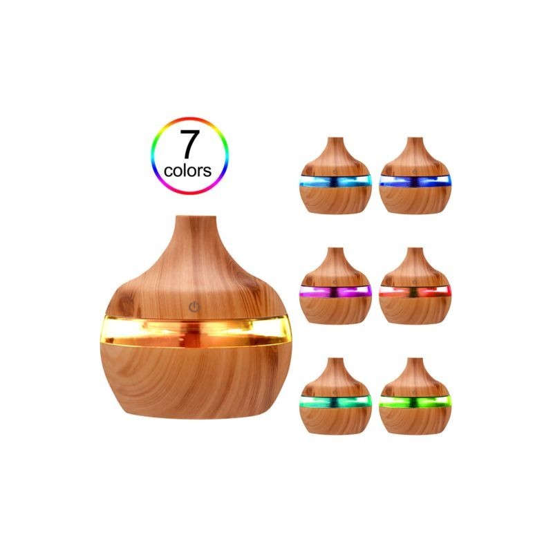 1pc Aromatherapy Essential Aroma Oil Diffuser Humidifier Wood Grain Air Humidifier USB Mini Mist Maker 7 Color LED Night Light