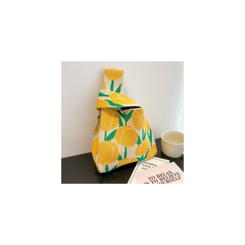 1pcs Handmade Knit Handbag Women Mini Knot Wrist Bag Japanese Casual Color Tote Bag Student Reusable Shopping Bags 20x35cm