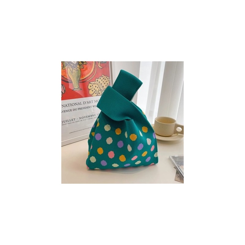 Cute Dot Knitted Handbag Women Mini Knot Wrist Bag Portable Casual Walking Square Tote Vest Bag Student Reusable Shopping Bags