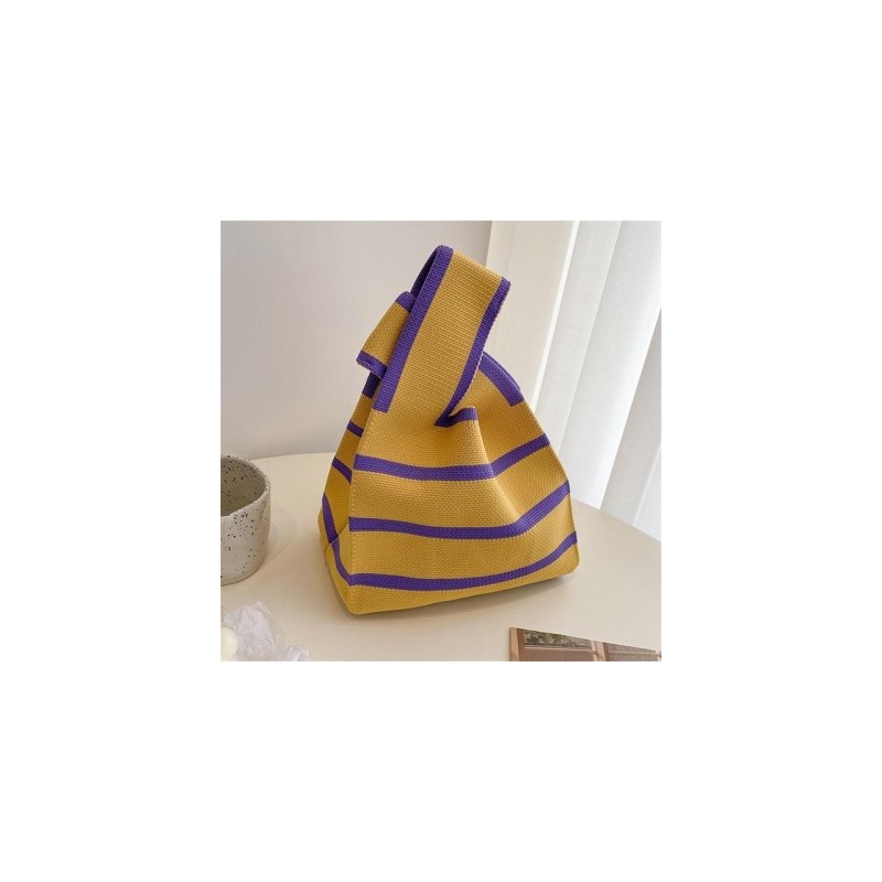 Cute Dot Knitted Handbag Women Mini Knot Wrist Bag Portable Casual Walking Square Tote Vest Bag Student Reusable Shopping Bags