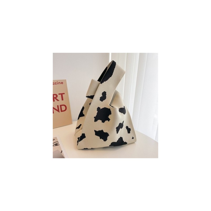 Cute Dot Knitted Handbag Women Mini Knot Wrist Bag Portable Casual Walking Square Tote Vest Bag Student Reusable Shopping Bags
