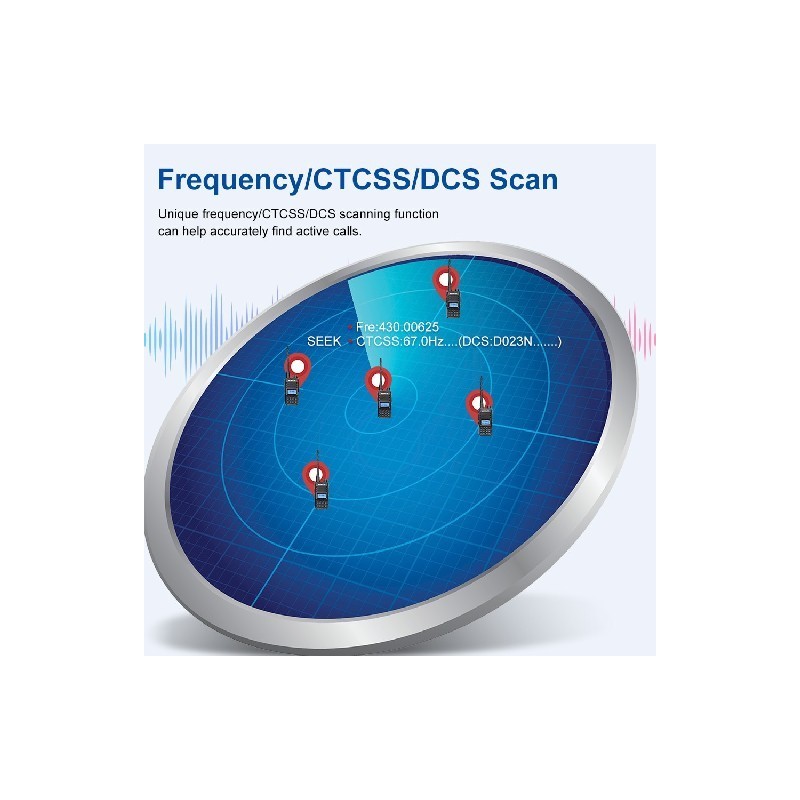 Unique frequency/CTCSS/DCS scanning function can help accurately find active calls.