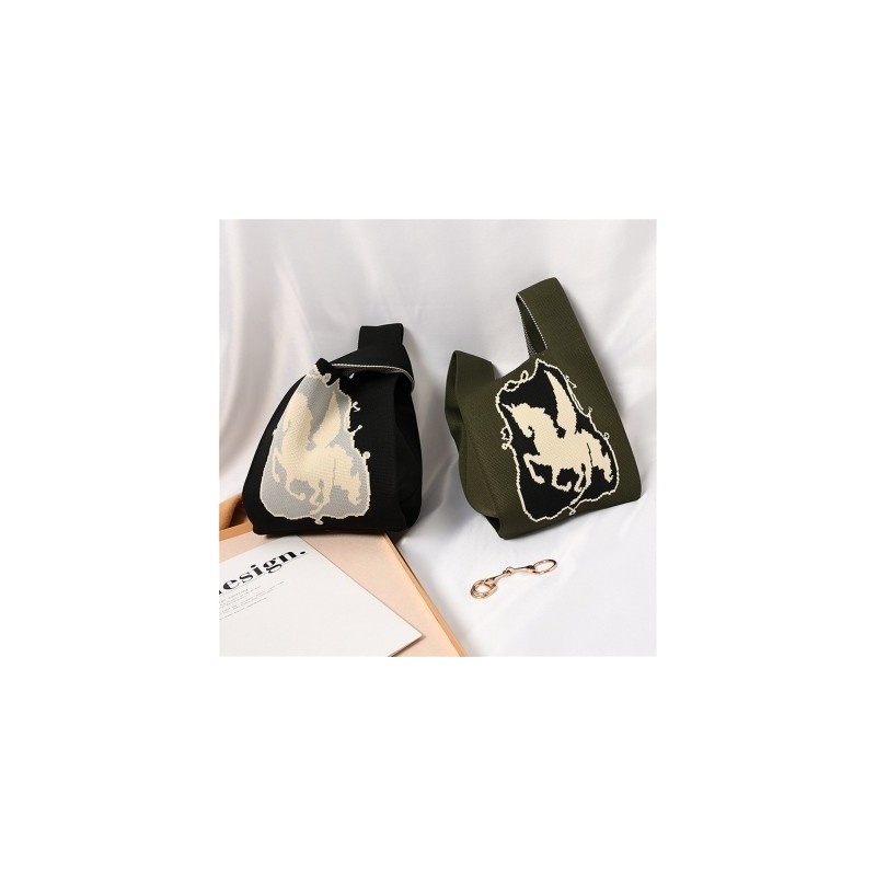 Angel Pony Knitted Handbag Students Casual Storage Shoulder Bag Fashion Woven Tote Bag Large Capacity Bags Trendy Bucket Bag New