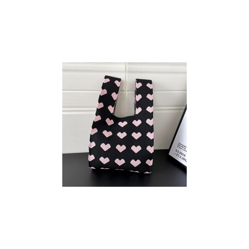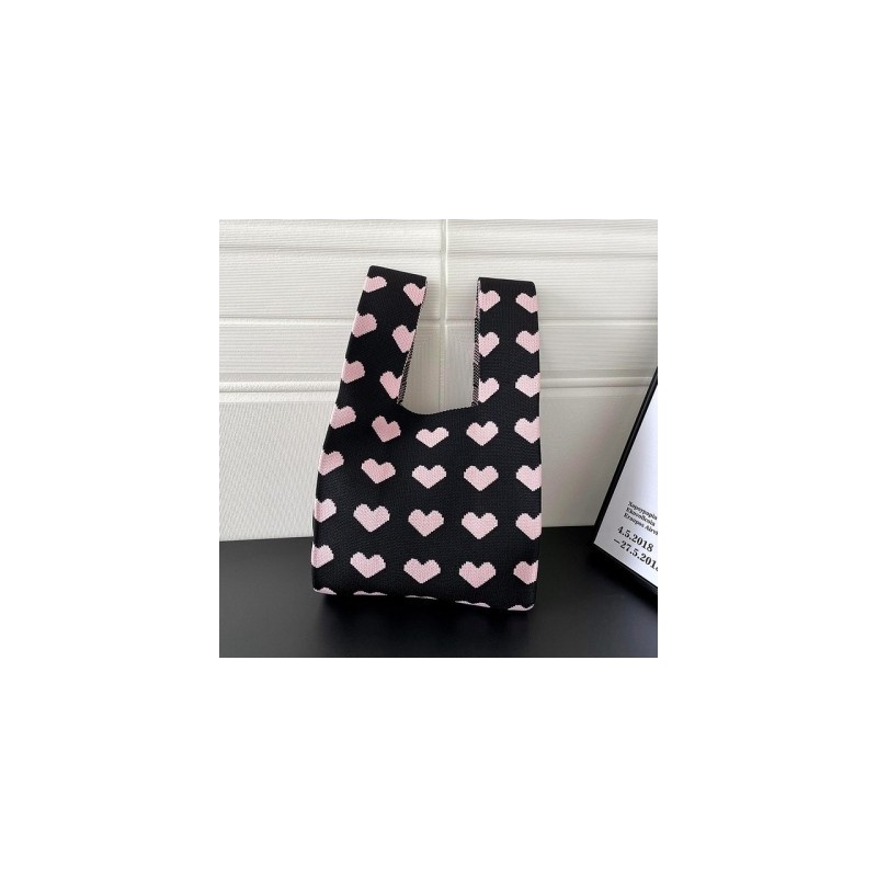 Kötött szerelmes kézitáska egyéniség Sokoldalú szőtt csuklótáska Divatos koreai női mini csomós hordtáska diák újrafelhasználható bevásárlótáska