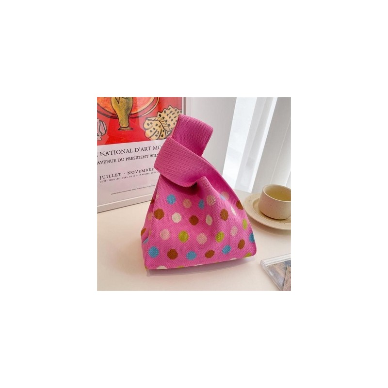 Cute Dot Knitted Handbag Women Mini Knot Wrist Bag Portable Casual Walking Square Tote Vest Bag Student Reusable Shopping Bags