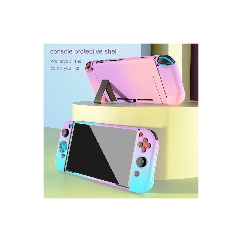 Pink Dockable Protective Case for Nintendo Switch Joy-Con Controller Hard Case Shell Colorful Cover Glass Screen Protector