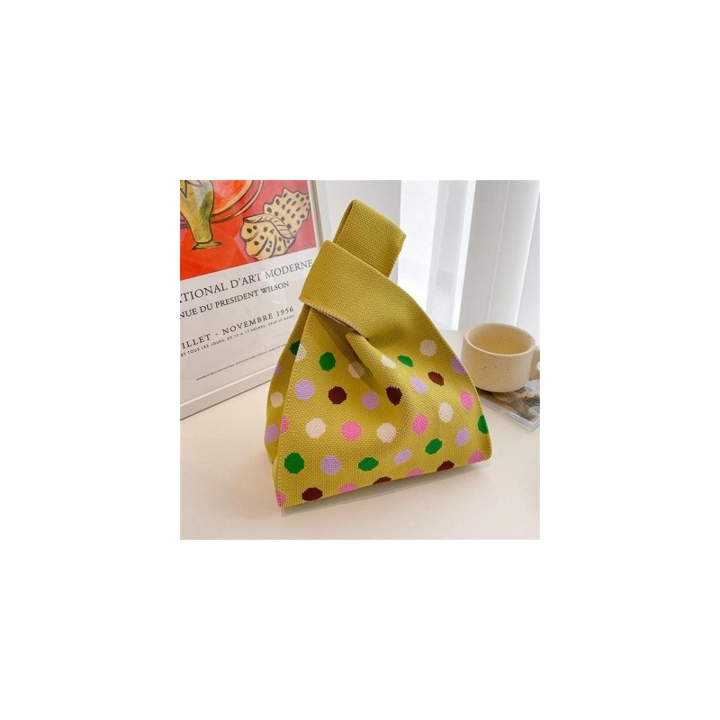 Aranyos pöttyös kötött kézitáska női mini csomós csuklótáska Hordozható alkalmi sétáló négyzetes mellénytáska Diák újrahasználható bevásárlótáskák