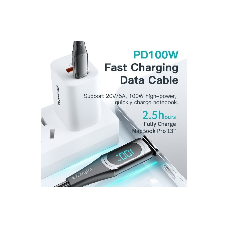 Essager USB To Type-C Cable C To C 100W/5A PD Fast Charging Charger Wire Cord For Macbook Xiaomi Samsung Type-C USBC Cable 2M