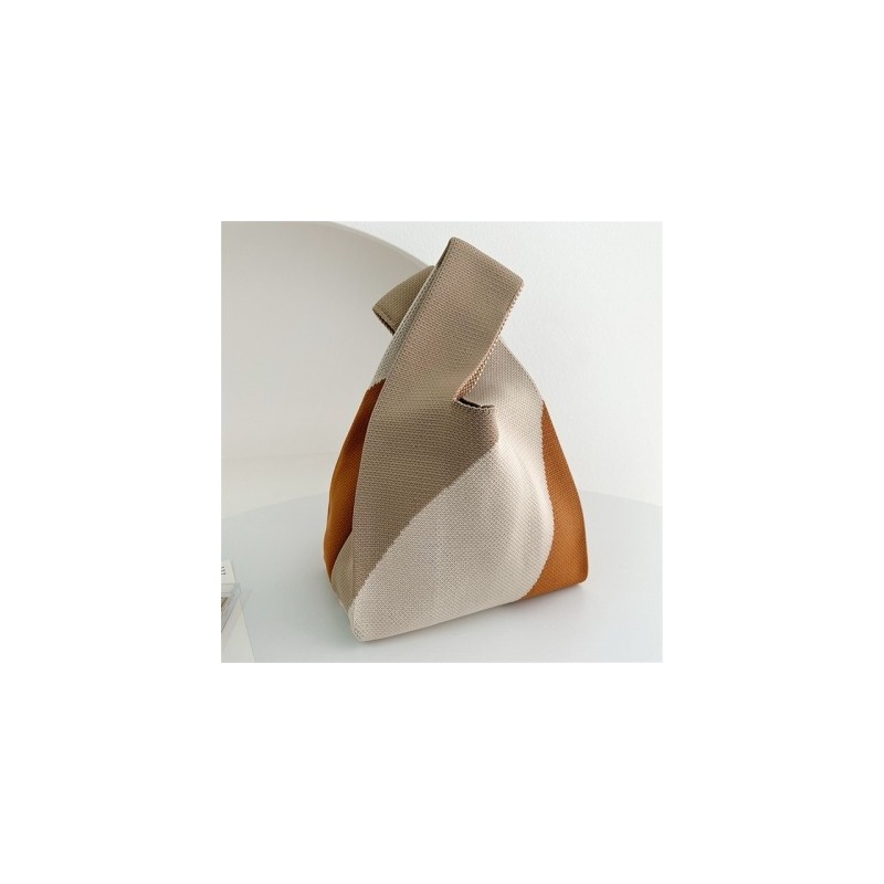 Handmade Knit Handbag Women Mini Knot Wrist Bag Japanese Casual Color Matching Wide Tote Bag Student Reusable Shopping Bags Gift