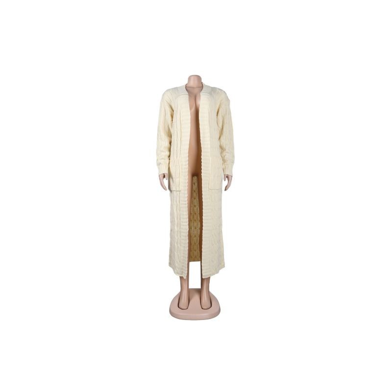 Autumn Winter Open Front Chunky Cardigan for Ladies Long Sleeve Cable Knit Floor Length Coat Fashion Side Big Pockets Outerwears