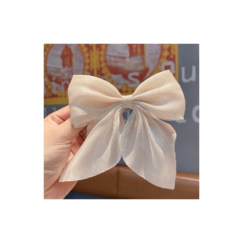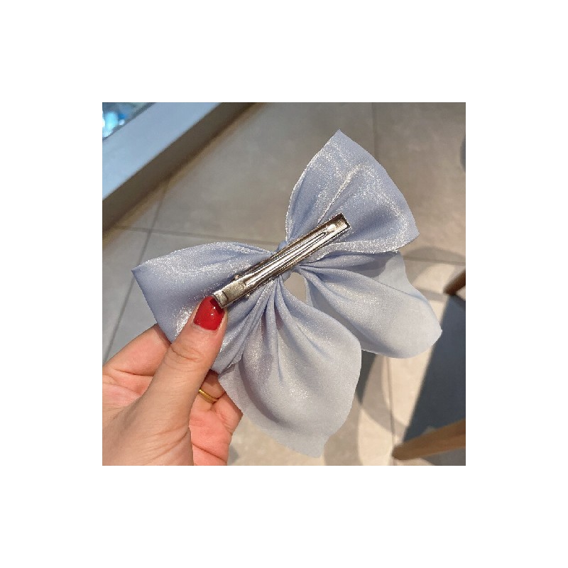Large Bow Hairpins Pearlescent Satin Ribbon Hair Clip Korean Women Hair Ornaments Solid Color Duckbill Clip Hair Accessories