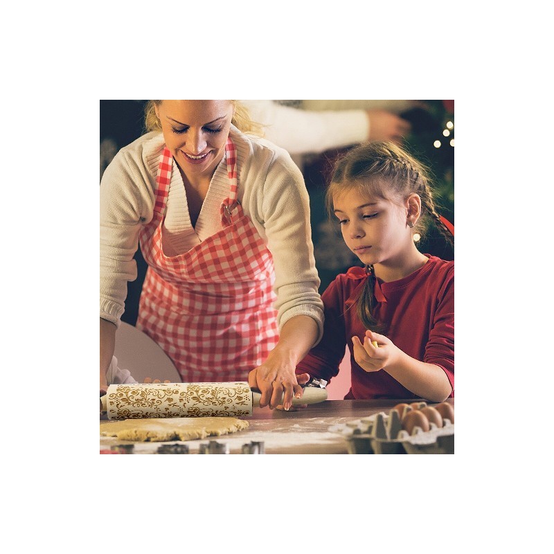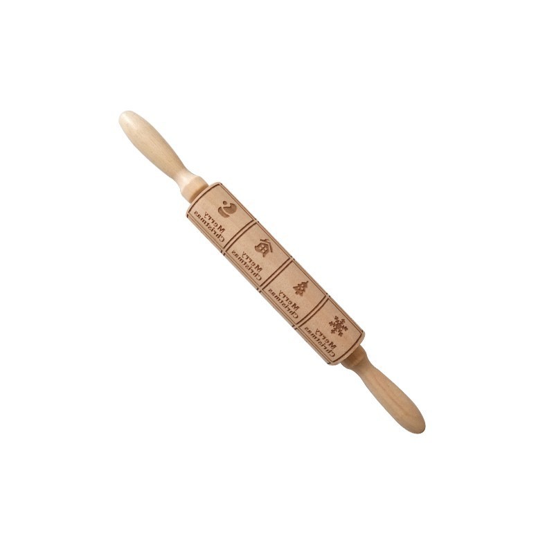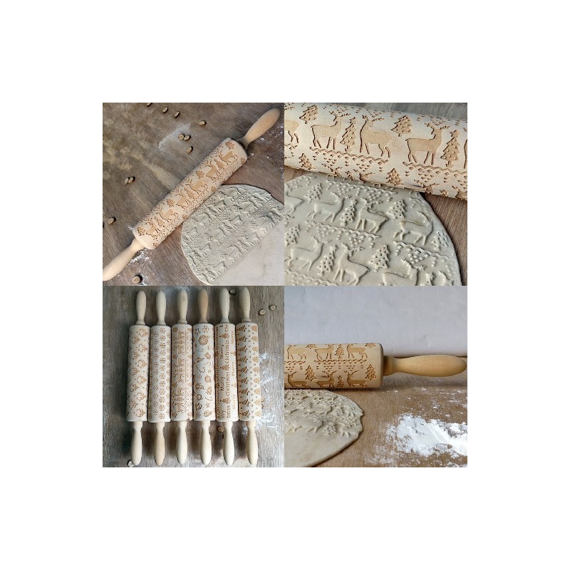 Wooden Carved Christmas Embossing Rolling Pin Reindeer Snowflake Pattern Engraved Roller Baking Cookies Fondant Cake Decorations