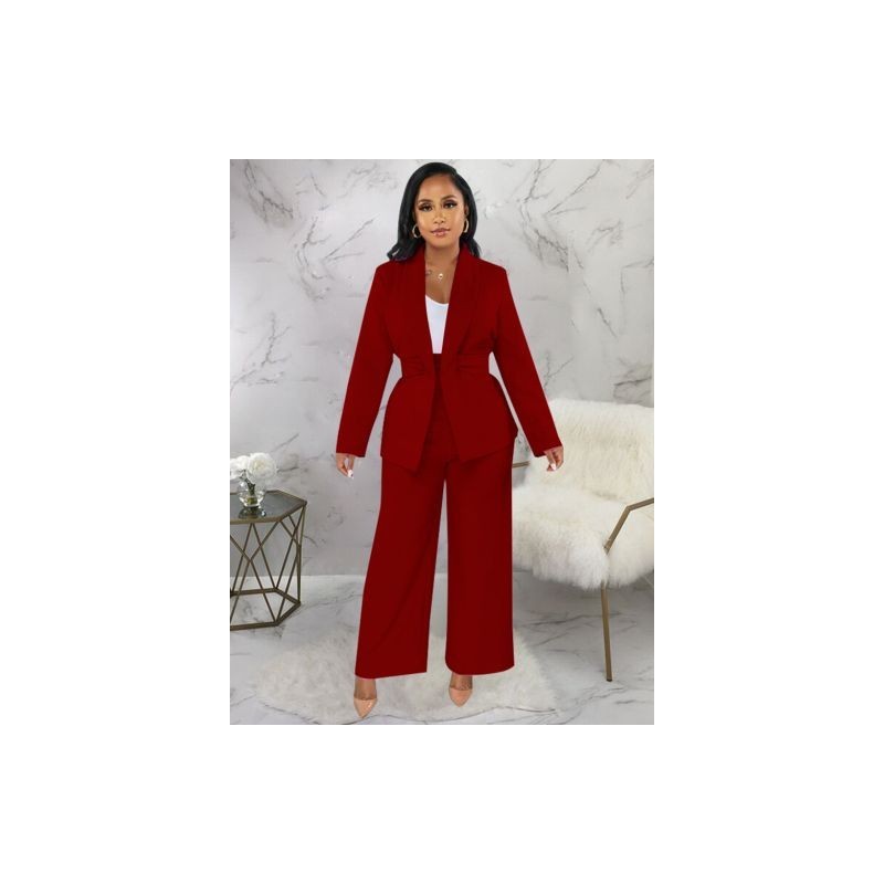 Női irodai blézer öltönyök klasszikus bevágásos galléros hosszú ujjú blézerkabát magas derékkal, bő, széles szárú nadrág Új
