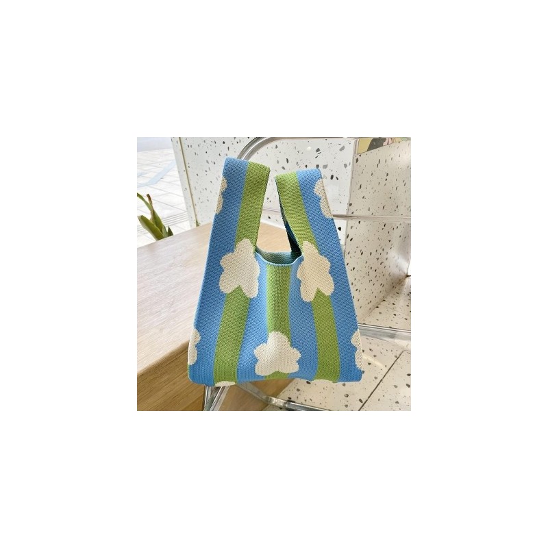 Niche Design Striped Flower Knitting Handbag Mini Knot Wrist Bag Summer Portable Reusable Shopping Bags Phone Key Pouch Purse