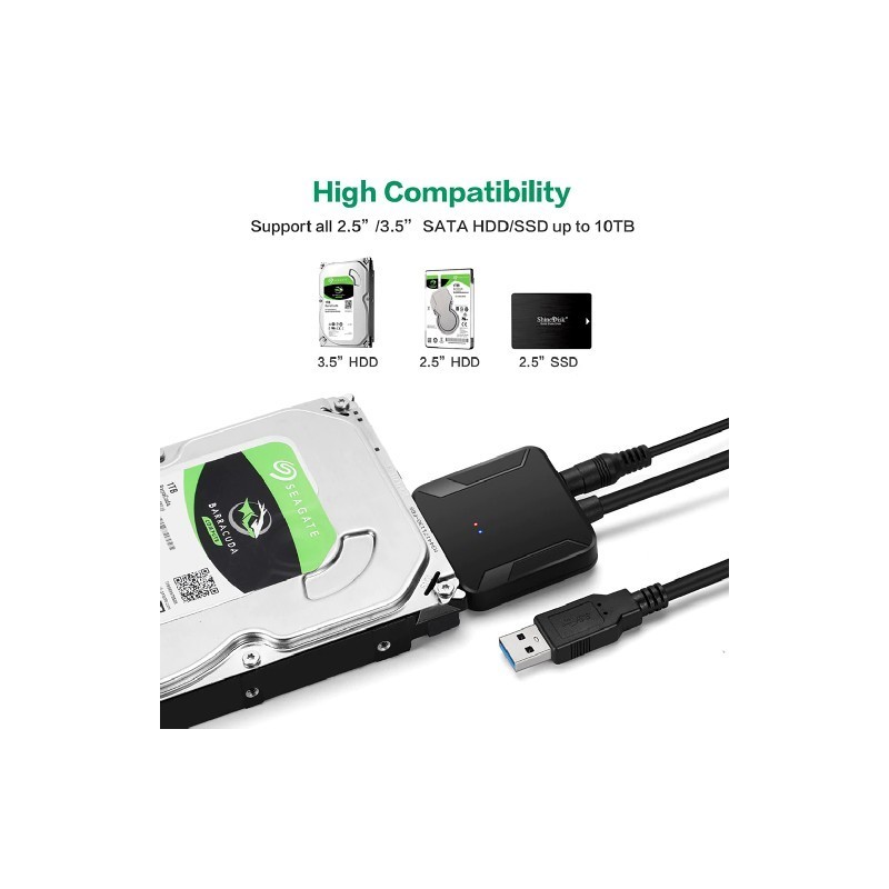 USB 3.0 - SATA 3 kábel SATA - USB adapter Kábelek konvertálása Támogatás 2,5/3,5 hüvelykes külső HDD SSD merevlemez-meghajtó adapter