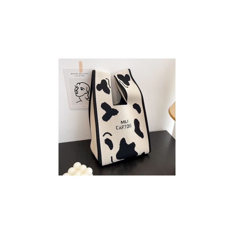 1pcs Handmade Knit Handbag Women Mini Knot Wrist Bag Japanese Casual Color Tote Bag Student Reusable Shopping Bags 20x35cm