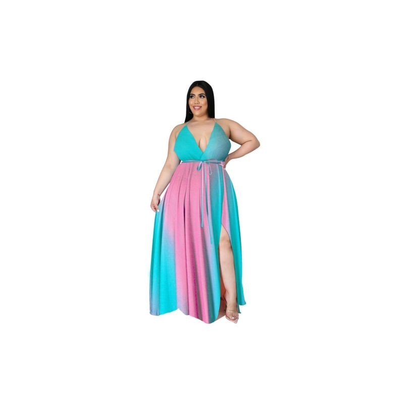 Plus Size Maxi Dress Wholesale Women Clothing Print V Neck with Belt Slip Tank Elegant Full Length Dresses Summer Dropshipping