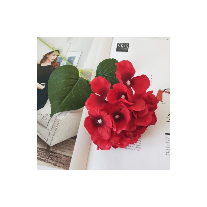 Szimulált hortenzia virág Egyágú, kétlevelű hortenzia lakásdekoráció virágkötészet esküvői helyszín dekorációs kellékei