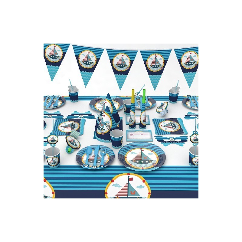 Hajózási témájú étkészletek gyerekeknek Születésnapi parti díszek Tengeri kék csónakos papírtányérok poharak vitorlás parti kellékek