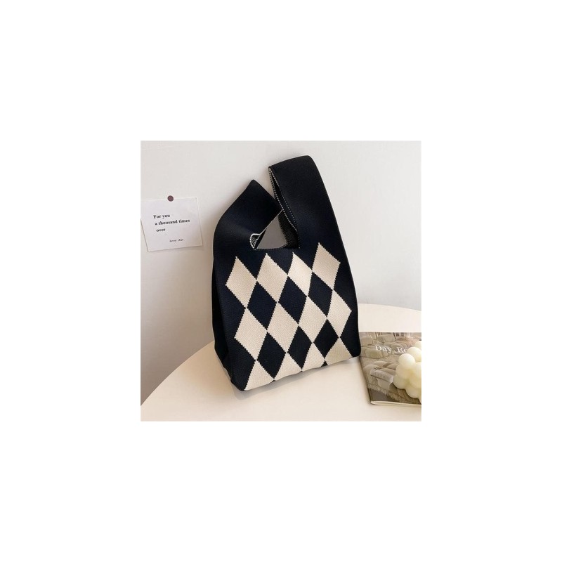 Cute Dot Knitted Handbag Women Mini Knot Wrist Bag Portable Casual Walking Square Tote Vest Bag Student Reusable Shopping Bags