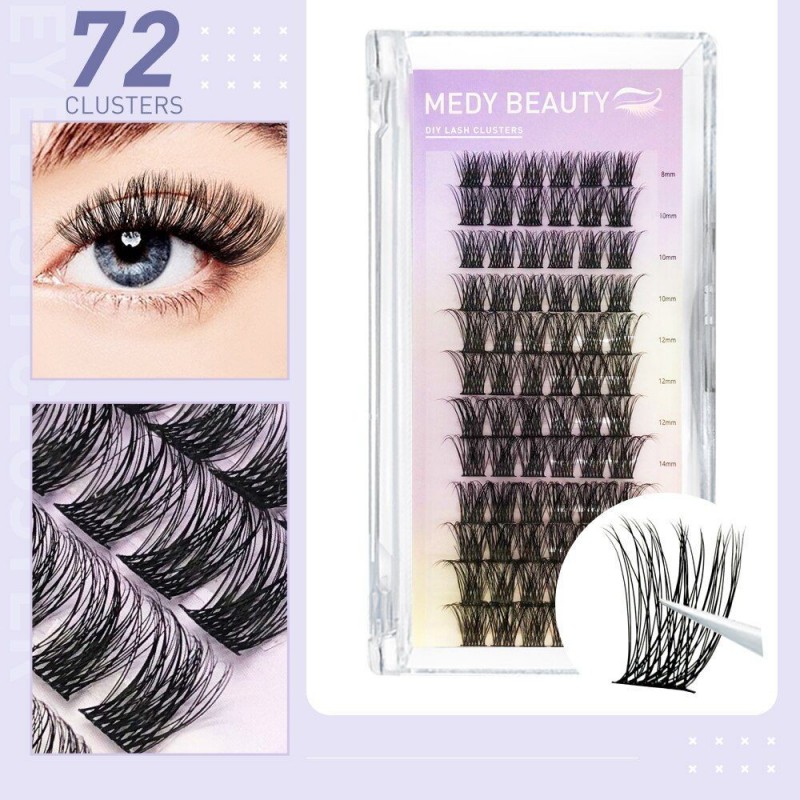 DIY 72 Clusters Lashes Mixed Tray Manga Eyelash Extensions Anime Soft Wispy Spiky Individual Lashes Cluster Home Mixing Length