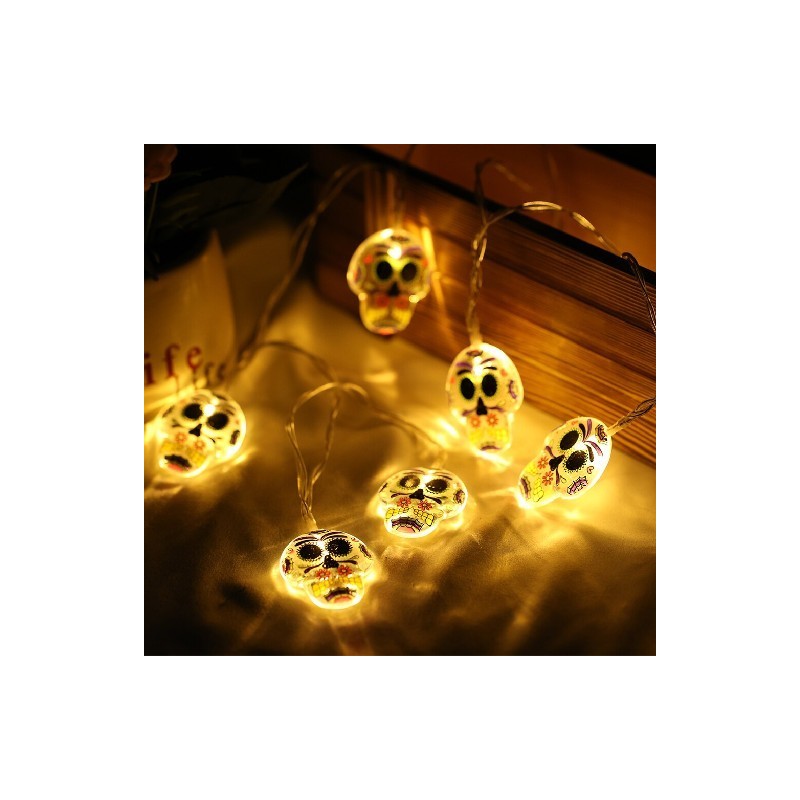 1.5m 10LED Halloween LED Skull Light Pumpkin Ghost Bat Skeleton Led Light String Hanging Horror Ornament Home Halloween Decor