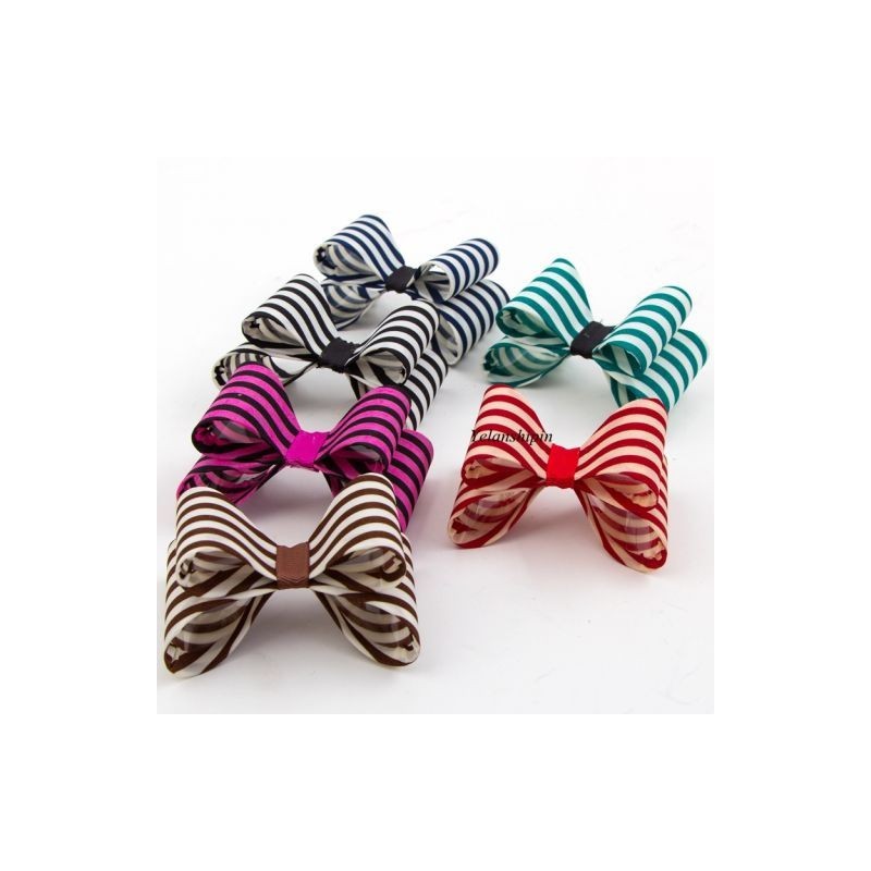 1PC 3.2" 6colors Vintage Luxe Striped Hair Bows Clips For Headband Handmade Hard Satin Hair Bow Clip For Girls Hair Accessories