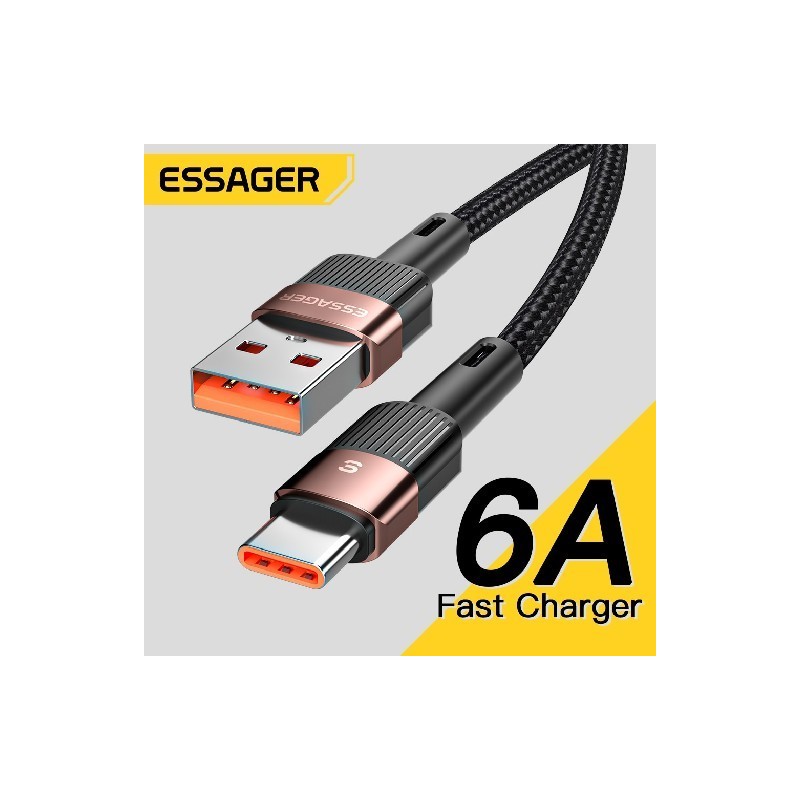 Essager 6A Type C USB Cable Fast Charging For Huawei P40 Pro P30 66W Wire USB-C Charger Data Cord For Samsung S21 ultra S20 Poco