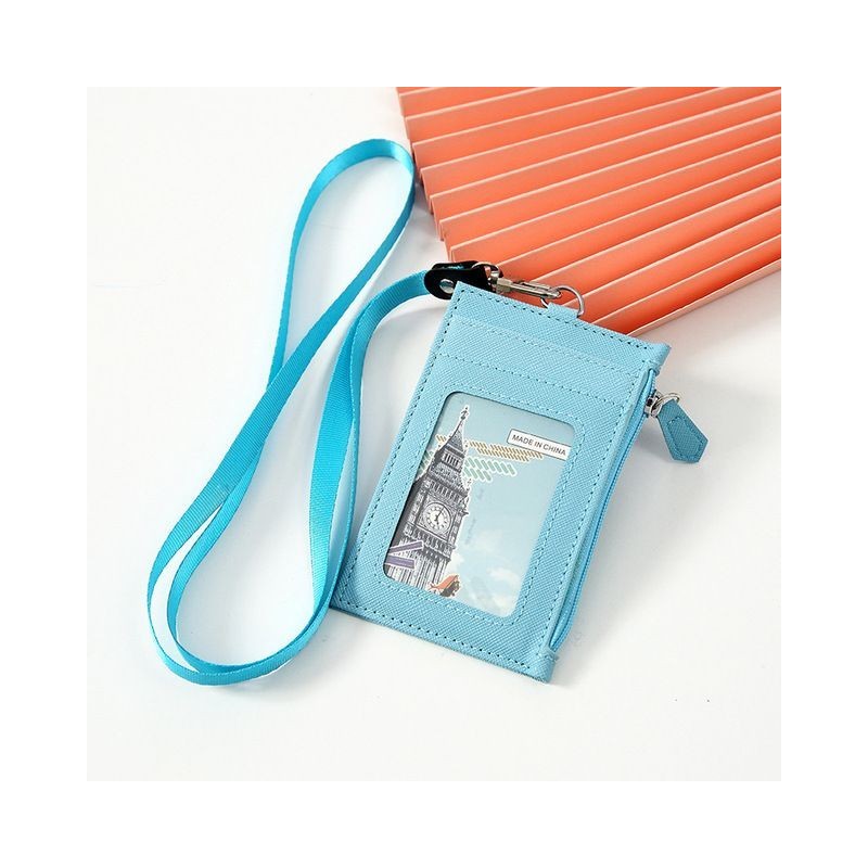 1pc Leather Business Credit Card ID Badge Wallet Pouch Women Men Coin Card Purse Holder Neck Strap Lanyard Student Bus Card Bags