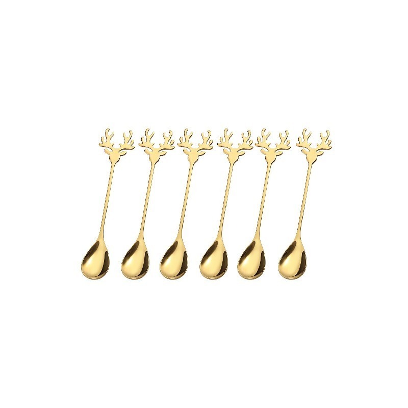 Stainless Steel Christmas Gold Elk Spoons Xmas Party Tableware Table Dinner Cutlery Gift Ornaments For Home Coffee Tea Stirring