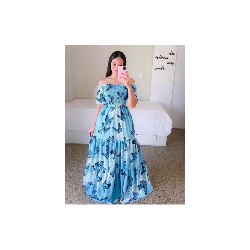 Summer Dress Women 2022 Off Shoulder Flower Print Chiffon Chest Wrapping Sweet Long Dress S-3xl