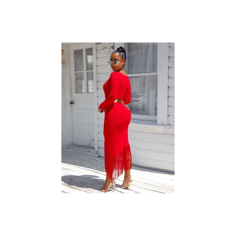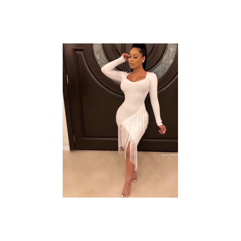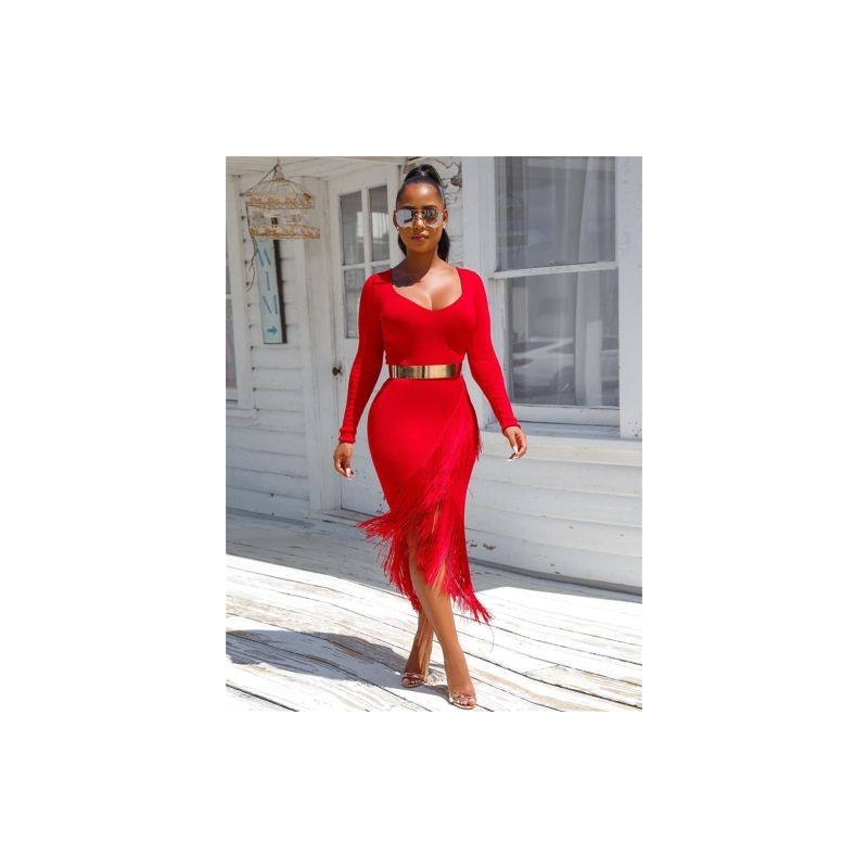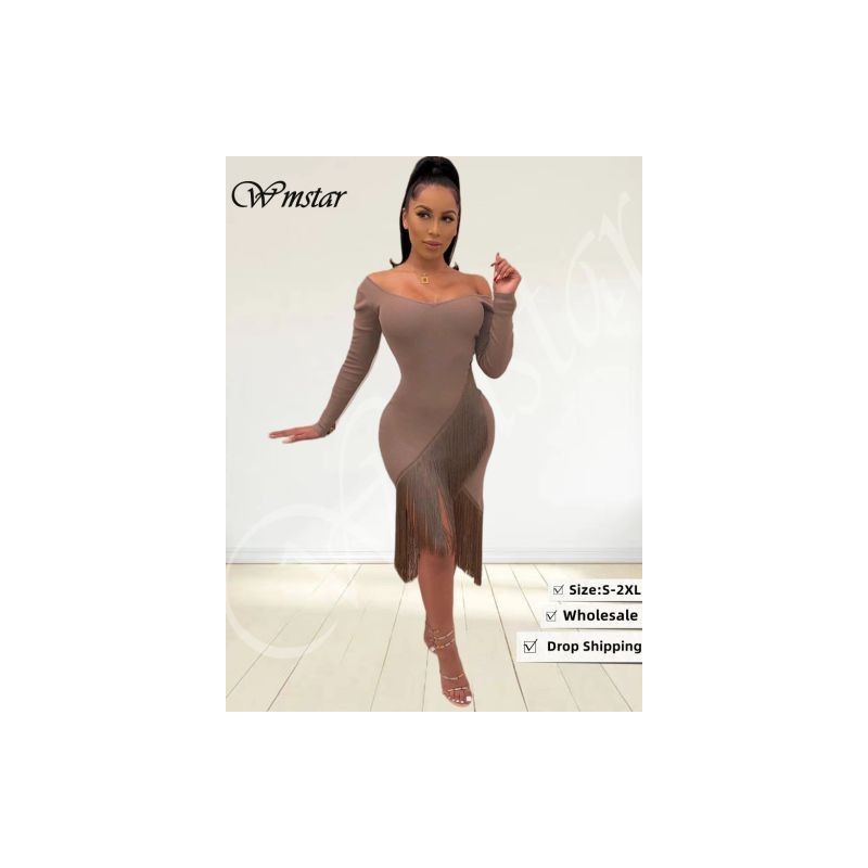 Női ruhák Bodycon Tassel Stretch Solid Szexi Elegáns Divatos Streetwear Maxi Ruha 2022