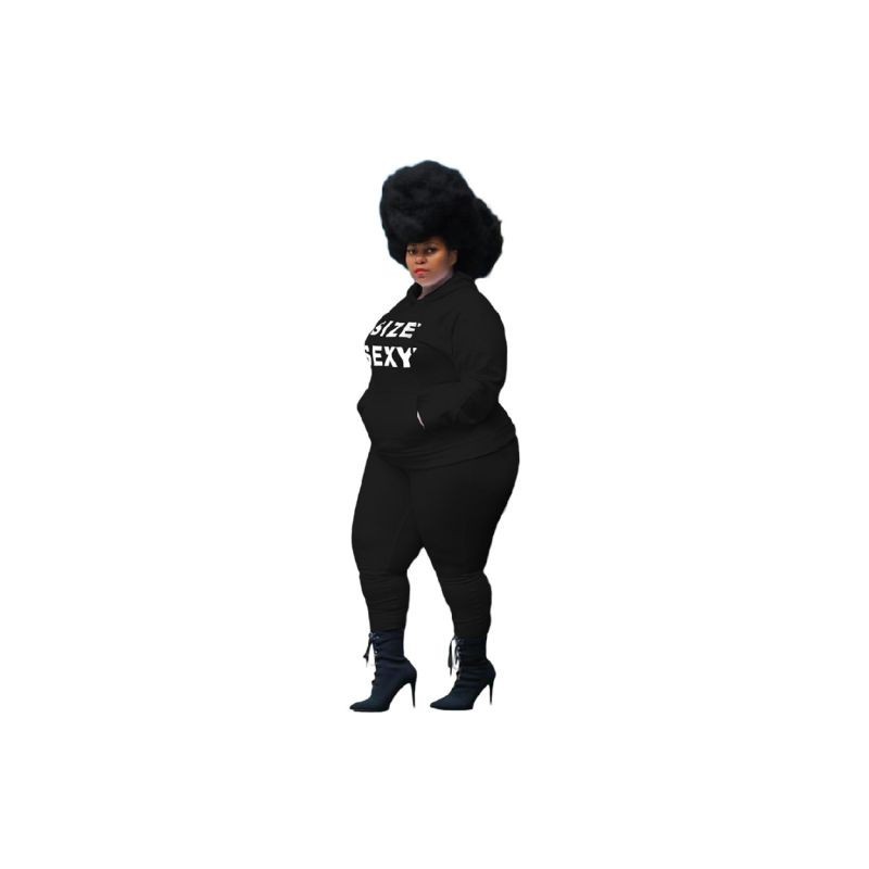 Plus Size Sweatsuit 2 Piece Set Women Crop Pockets Top Sweatpants Letter Casual Bodycon Jogger Outfit