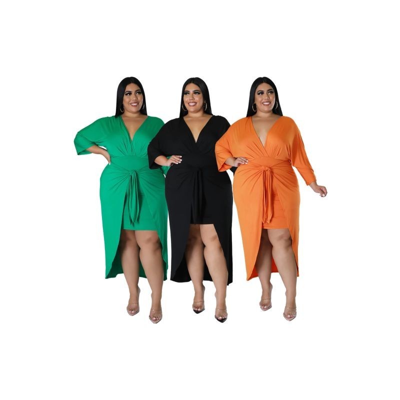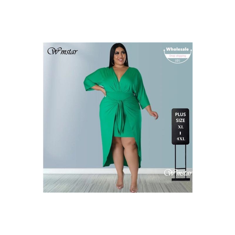 Nagy méretű ruhák női tömör V nyakú, hosszú ujjú kötszerrel, rugalmas alkalmi, édes, elegáns maxi ruha
