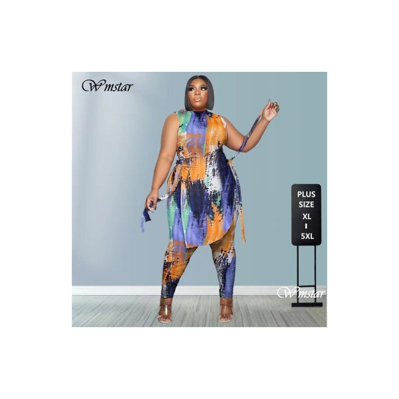 Plus Size Two Piece Outfits Women Clothing Summer Sleeveless Bandage Top Stacked Leggings Matching