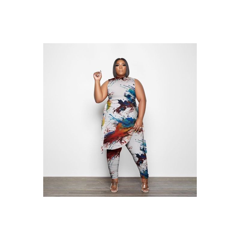 Nagy méretű, kétrészes ruhák női ruhák nyári ujjatlan pólya felső halmozott leggingsek illő