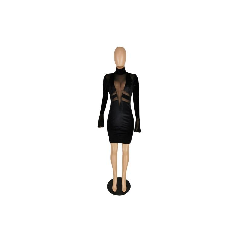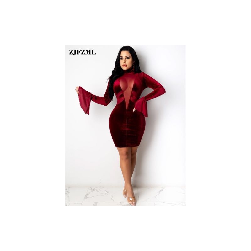 Vintage áttetsző hálós, átlátszó bársonyruha, női, divatos garbó, hosszú, lobogó ujjú Vestidos őszi téli csomag csípőruha