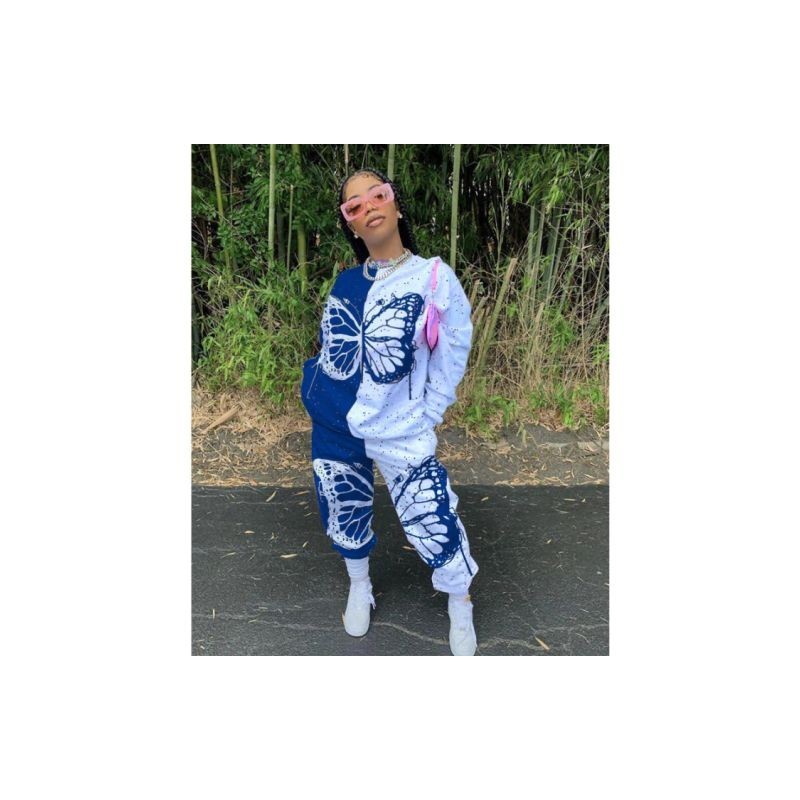 Two Piece Oufits Women Plus Size Clothing S-4XL Sweatshirt Stacked Sweatpants Butterfly print Patchwork