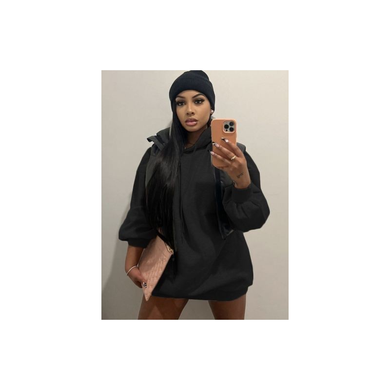 2022 Fall Winter Black Grey Women's Hoodie Dress Casual Drawstring Hooded Long Sleeve Sweatshirt Dress Harajuku Loose Vestidos