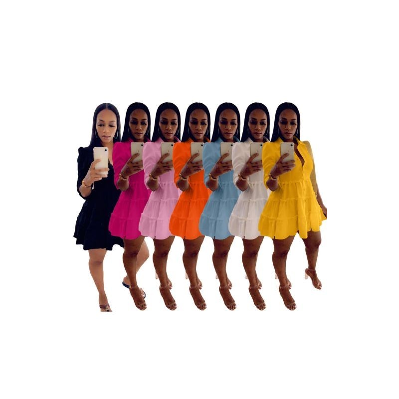 2022 Spring Summer Dresses Clothing Women Solid Turn Down Collar Half Sleeve Elegant Mini Dresses New