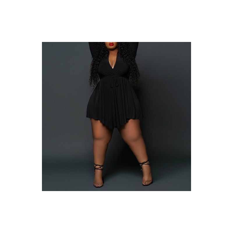 Plus Size Sexy Dress Women Fall Clothes Solid Long Sleeve Deep V Neck Mini Dresses Club Birthday Outfits