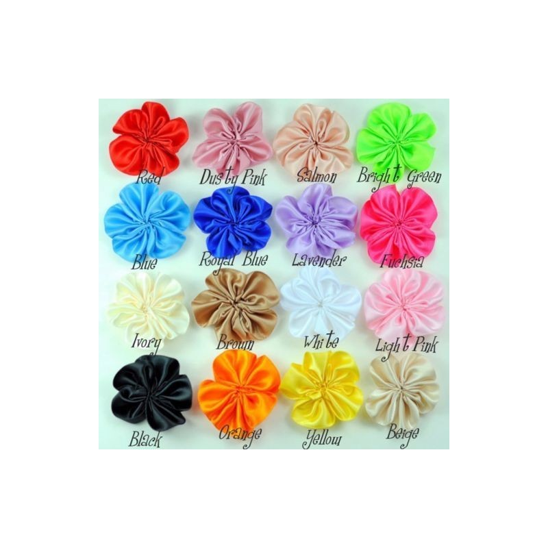 10pcs/lot 2" 16colors Hair Clips Satin Ribbon Petal Flower For Hair Accessories Artificial Ruffled Fabric Flowers For Headbands
