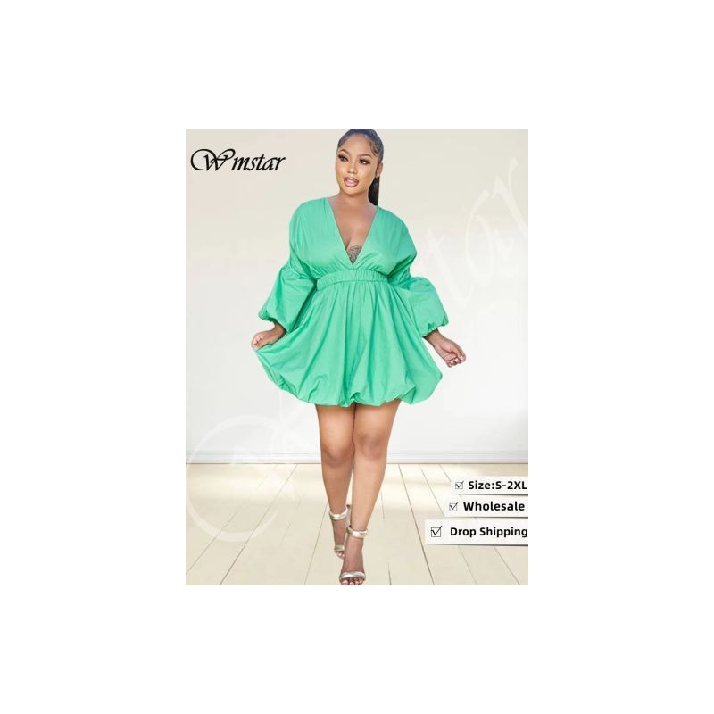 Dresses for Women Fall Deep V Neck Sweet Elegant Elastic Waist Big Hem Midi Dress Fashion Party