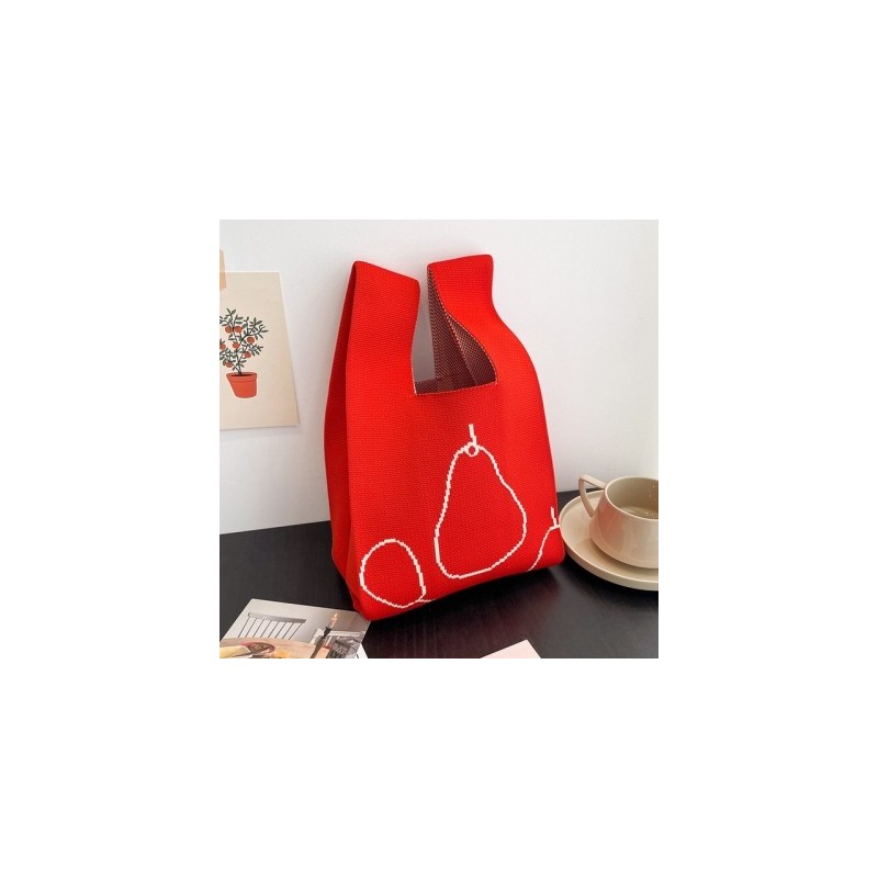 1pcs Handmade Knit Handbag Women Mini Knot Wrist Bag Japanese Casual Color Tote Bag Student Reusable Shopping Bags 20x35cm