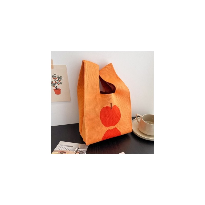1pcs Handmade Knit Handbag Women Mini Knot Wrist Bag Japanese Casual Color Tote Bag Student Reusable Shopping Bags 20x35cm