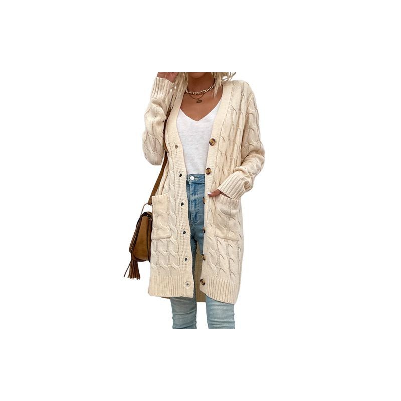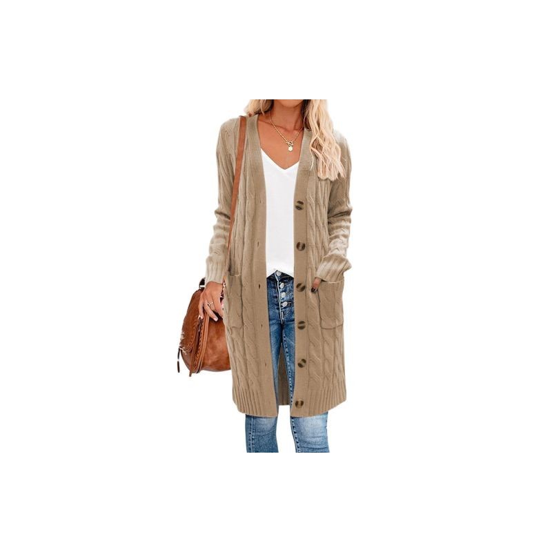 Egyszínű női kardigán, hosszú ujjú pulóver, kötött kabát zsebekkel tavaszi őszi SML-hez
